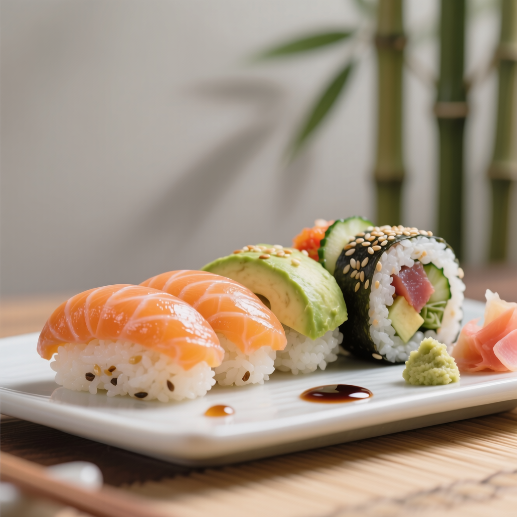 Творожный сыр, лосось, тунец, соус унаги, кунжут, кляр, панировочные сухари, рис, нори